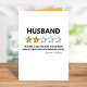 Funny valentines/birthday day card featuring the word "Husband", with a 2 star review, the comment "burper, loud snorer, handyman, would sometimes recommend them", and your name. Can also be changed for a girlfriend, boyfriend or wife.