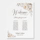 Help your guests find their table with this elegant white floral seating chart. It is suitable for a wedding with 2 guest tables and twenty guests.