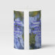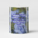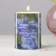This pillar candle displays a neue machina ultrabold print font with purple letters showcasing the "2 Timothy 1:7" KJV bible scripture verse over a background picture showcasing a group of light blue flowers with green stems in a upclose view plus dim background in this floral theme. This verse is referencing the Book Of 2 Timothy 1st chapter showing the 7th verse in this bible scripture quote theme from the King James bible. The candle is covered with a beautiful full-color wrap hand poured, individually designed made with high grade American paraffin & beeswax and, burns approximately 40 hours made in the USA.