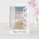 Beach hearts in the sand with frothy ocean surf and open window view for 2nd wedding anniversary