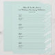 This 8.5" x 11" customized filler page, in a blue green design with black lettering, is personalized and perfect to fill binder style 2nd Anniversary Party Memory Books or Guest Books. This notebook filler paper is easy to personalize - change name, event title, and delete or modify date. Page is pre-formatted to have attendees add their contact info and a message as they sign in, 4 names per page. You will need to punch holes to fit your binder. All Rights Reserved © 2014 Alan & Marcia Socolik