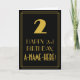 The front of this vintage look birthday themed greeting card design features a large art deco look inspired number "2", the message "HAPPY 2nd BIRTHDAY,", a customizable name, and a border pattern consisting of lines. The background of the front is colored black. The inside features a customized birthday greeting message, or could perhaps be cleared and left blank if a message is to be written by hand instead. A personalized birthday card like this might be a fun way to send birthday wishes to somebody who is celebrating their second birthday. [~Z0000502]