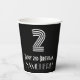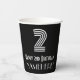 This 1920s-1930s style inspired and vintage look birthday-themed paper cup design features a large art deco inspired look number “2”, along with the birthday greeting message “Happy 2nd Birthday,” and an editable name. It also has a black-colored background. Birthday themed paper cups like this might be a fun way to celebrate somebody’s second birthday. [~Z0000542]