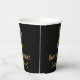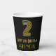 This 1920s-1930s style inspired and vintage look birthday paper cup design features a large art deco inspired look number “2”, along with the birthday greeting message “Happy 2nd Birthday,” and a customizable name. The background is colored black. 1920s-1930s style inspired birthday themed paper cups like this might be used at a party in celebration of somebody’s second birthday. [~Z0000546]