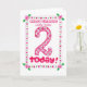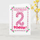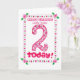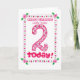 A pretty birthday card for a Two-year-old Little Sister, with a pretty floral design in shades of pink and green, made from a handpainted paper collage by Judy Adamson.