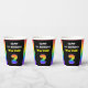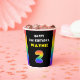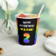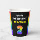 This upbeat and joyful birthday paper cup design features a large number “2“ with a colorful rainbow spectrum inspired gradient pattern, along with the message “HAPPY 2nd BIRTHDAY,”, and an editable recipient name. Birthday themed paper cups like this might be used at a birthday party celebrating somebody’s 2nd birthday. [~Z0000639]