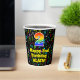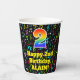 This exciting and fun music-themed birthday paper cup design features a large number “2” having a rainbow spectrum gradient inspired pattern. It also features the message “Happy 2nd Birthday,”, and a personalized name. The background features a colorful music notes and symbols pattern. Vibrant, colorful paper cups like this might be fun to have at a birthday party being held to celebrate somebody’s 2nd birthday. [~Z0000541]