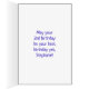 The front of this vibrant, joyful, and fun birthday-themed greeting card design features a large number “2” with a rainbow spectrum gradient inspired pattern, along with the message “Happy 2nd Birthday,”, and a customizable recipient name. The front additionally features a vibrant and colorful background pattern of music notes and symbols having various sizes. The inside features a custom birthday greeting message, or could perhaps be cleared and left blank if a message is to be written by hand instead. A personalized birthday card like this might be a fun way to send a message celebrating somebody’s second birthday. [~Z0000527]