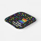 This fun and exciting birthday themed paper plate design features a large number “2” with a rainbow spectrum gradient inspired pattern, along with the message “Happy 2nd Birthday,”, and a custom name. The background features a colorful pattern having many star shapes with different sizes and colors. Birthday themed paper plates like this might be used at a party celebrating somebody’s 2nd birthday. [~Z0000582]