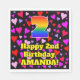 This fun and joyful birthday themed paper napkin design features a large number “2” having a rainbow spectrum gradient inspired pattern. It also features the message “Happy 2nd Birthday,”, and a custom name. The background features a pattern of pink, purple, and red heart shapes. Fun, upbeat paper napkins like this might be fun to use at a birthday celebration being held to honor somebody’s second birthday. [~Z0000550]