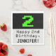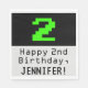 This nerdy and fun birthday paper napkin design features a large green vintage computer game style number "2" on a black colored background. It also features the birthday greeting message "Happy 2nd Birthday,", and a custom name. Birthday themed paper napkins like this might be fun to use at a celebration being held to honor somebody who is celebrating their second birthday. [~Z0000404]