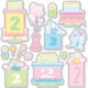 Decorate a locker, car window, gift or favor bag, add to the wrapping on special present, or make a card for that big 2nd birthday. A collection of graphic cakes, presents and birthday stickers all in pretty pastels with the number 2 proudly displayed.