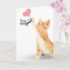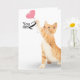 Gold tabby cat with pink heart balloon for 2nd birthday on white background.