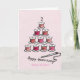 The card shows a tower of cake shaped cotton reels and a neede and thread, It can be personalised to include the name of the couple, as well as your own customised message.