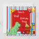 2nd Dinosaur Cupcake Balloon Stripe Birthday Red Invitation