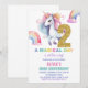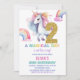 2nd Rainbow Unicorn Birthday Invitations Glitter