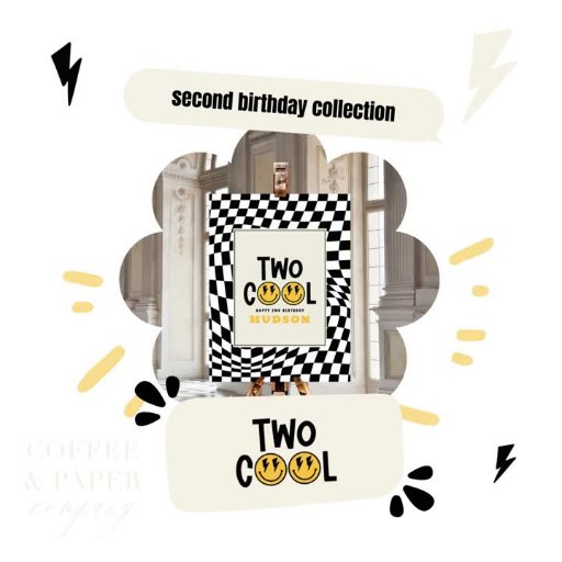 2nd birthday smile face retro black white groovyDesigned by Stacy Speakman-Cooke