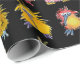 30 Cute Cartoon Kiwi Birds on Black Wrapping Paper
