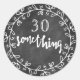 NewParkLane - Stickers, with fun quote '30 Something' in an elegant wreath with fun typography, against a black chalkboard background.