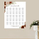 This beautiful 30 table autumn floral wedding seating chart includes table assignments for 300 guests with 10 seats per table. The rustic boho chic design features hand painted watercolor roses and garden foliage in shades of rust orange, burnt umber, and coral peach. The script calligraphy title reads "please find your table" and there is space for the names of the couple and wedding date at the bottom. Wonderful way to add beauty and style to your wedding reception while making it easy for your guests to find their tables.