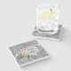 Here is a whimsical intricate floral themed 30th wedding anniversary coaster that you can personalize for a special bride and groom! Two prothonotary warblers perch on a decorative floral pattern border made of silver colored flowers and artistic swirls. The yellow birds sit beside a space for two names and a wedding year in script text.