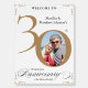 30th Anniversary White Gold Photo Welcome Sign. Elegantly designed special wedding anniversary celebration invitation, featuring a custom photo of the couple and script calligraphy with vintage flourish elements. A truly memorable and special way to celebrate this milestone!