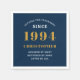 A personalized classic paper napkin design for that birthday celebration for a special person born in 1994 and turning 30. Add the name to this vintage retro style blue, white and gold design for a custom 30th birthday gift. Easily edit the name and year with the template provided. A wonderful custom birthday gift. More gifts and party supplies for that 30th party celebration available in the store.