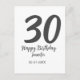 30th birthday add name date year black template postcard