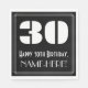 This 1920s/1930s appearance inspired vintage look birthday-themed paper napkin design features a large art deco style inspired number "30", the message "Happy 30th Birthday,", a personalized name, and a border pattern consisting of thin lines. Birthday themed paper napkins like this might be fun to use at a celebration being held to honor somebody who is celebrating their 30th birthday. [~Z0000494]