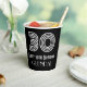 This vintage appearance and Roaring Twenties inspired birthday themed paper cup design features a large art deco inspired appearance number “30”, in addition to the birthday greeting message “Happy 30th Birthday,” and a custom name. The background is colored black. Birthday themed paper cups like this might be fun to use at a birthday party being held for somebody who is celebrating their thirtieth birthday. [~Z0000542]