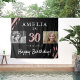 Elegant 30th Birthday Black 2 Photo Backdrop. Elegant black background with pink watercolor stripes and white text. Custom name, date, age and Happy birthday text. Use the tapestries as a backdrop for the 30th birthday party. Add your photos - old photo and new photo. Personalize name, date and age.