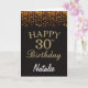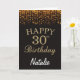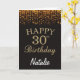 30th Birthday Black and Gold Glitter Card with personalized name. For further customization, please click the "Customize it" button and use our design tool to modify this template.