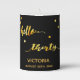 Elegant and modern for a 30th birthday party. A black backdrop and faux gold text written with a trendy hand-lettered style script: hello thirty. With golden dots as decor. Templates for name and date, golden letters. You can change the background color to match your theme. Click customize and then "select a background color" on your right.