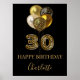 For a glamorous 30th birthday party. A black background, decorated with balloons. With the text: Happy Birthday. Personalize and add a name. The name is written with a modern hand lettered style script Number 30 is written with a trendy balloon style font, leopard print. . Can be used as a welcome sign, wall decor for the party.