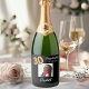 30th Birthday black gold photo Sparkling Wine Label