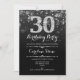 30th Birthday - Black Silver Invitation
