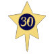 Star shaped, acrylic cake topper for a 30th birthday milestone celebration. Cake topper colors are blue and yellow. You may edit birthday age as desired.