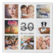 A unique 30th birthday gift or keepsake, celebrating her life with a collage of 8 of your photos. Add images of her family, friends, pets, hobbies or dream travel destination. Personalize and add a name, age 30 and a date. Gray and black colored letters. A chic white background. This canvas is also available in our store with black or rose gold colored background.