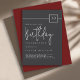 The modern minimalist layout pairs a deep matte black background with refined ivory-beige typography—featuring a bold sans-serif for the event details and a graceful handwritten script for the word “Birthday.” A sleek square badge highlights the milestone age, adding a sophisticated touch for any adult birthday celebration. NOTE: You can edit the age to any age!