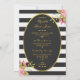 30th Birthday Floral Black White Stripes Gold Foil Invitation