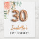 For an elegant and feminine 30th birthday birthday party. A chic white background. Decorated with a rose gold and blush pink watercolored rose flower, floral, green eucalyptus leaves, sprigs, greenery and faux gold sprigs. Personalize and a name. Black and golden letters. The name is written with a modern hand lettered style script. Number 30 is written with a golden balloon style font.