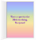 This cheerful and colorful birthday-themed greeting card design features a cartoon-style depiction of a three-tier birthday cake having numeral-shaped candles on top showing the number “30“, along with the message “HAPPY 30TH BIRTHDAY,”, and a custom recipient name. The background of the front features a multi-color pastel rainbow spectrum inspired gradient pattern. The inside features a customizable birthday greeting message, or could perhaps be cleared and left blank if a message is to be written by hand instead. An upbeat, personalized birthday greeting card like this might be sent in celebration of somebody’s thirtieth birthday. [~Z0000626]