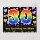 The front of this colorful, loving, and fun birthday-themed postcard design features a large number "30" having a rainbow spectrum gradient inspired pattern. It also features the message "Happy 30th Birthday,", and a personalized recipient name. The front additionally has a vibrant and colorful background pattern featuring loving heart shapes of different sizes. The back features a customizable birthday greeting message, or could perhaps be cleared and left blank if a message is to be written by hand instead. A personalized birthday postcard like this might be a fun way to celebrate somebody’s thirtieth birthday. Postcards like this might also be used to invite guests to a birthday celebration being held for somebody who is turning 30 years old. [~Z0000448]