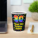 This joyful and colorful birthday paper cup design features a large number “30” having a rainbow spectrum gradient inspired pattern. It also features the message “Happy 30th Birthday,”, and a personalized name. The background features a vibrant and colorful star field inspired pattern. Colorful, vibrant paper cups like this might be fun to use at a birthday party/celebration being held to celebrate somebody’s thirtieth birthday. [~Z0000540]
