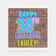 This fun birthday-themed paper napkin design features the message “HAPPY 30TH BIRTHDAY,” having a vibrant, colorful, urban street art and graffiti inspired look, in addition to a custom recipient name. The background features a pattern inspired by the look of a brick wall. Birthday themed paper napkins like this might be a fun way to celebrate somebody’s thirtieth birthday. [~Z0000534]