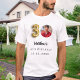 For a white, light colored t-shirt. Black text. Personalize and add a photo, name, age, date. Faux gold looking 3-number.
