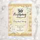 30th Birthday - Gold Stripes White Roses Invitation