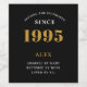 1995 Vintage 30th Birthday Black & Gold Elegant Wine Label. Celebrate your milestone with our exclusive birthday wine label. The meticulously designed label with stunning black and gold hues effortlessly enhances the visual appeal of your favorite wine. The year prominently featured on the label, adds a nostalgic throwback to the day of your birth. Using premium quality material, this label ensures longevity, further cementing its place as a memorable keepsake from your special Birthday celebration. In addition, enjoy the benefit of personalizing this label with your name, adding a unique and intimate touch to your celebration. • Stunning Black & Gold Design: Infuses an aura of sophistication & elegance to any wine bottle, making it a perfect centerpiece for your celebration