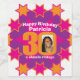 Bright pink and yellow 30th birthday add your own photo wine labels. Add your own thirtieth birthday photo to the 0 of 30 and customize with the birthday message / name of your choice. Currently reads Happy Birthday Patricia 30 a classic vintage. A great way to customize your alcoholic birthday gifts. Unique design by Sarah Trett. www.sarahtrett.com