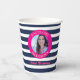 Make a splash with these personalized birthday cups, designed for a fun nautical-themed celebration. The eye-catching navy blue and white stripes paired with a bright pink circle create a festive look that's perfect for any party. Easily add a special photo of the birthday girl and her name, transforming these simple cups into beautiful party favors. These sturdy, high-quality cups will keep drinks cool and complement any nautical party decor.